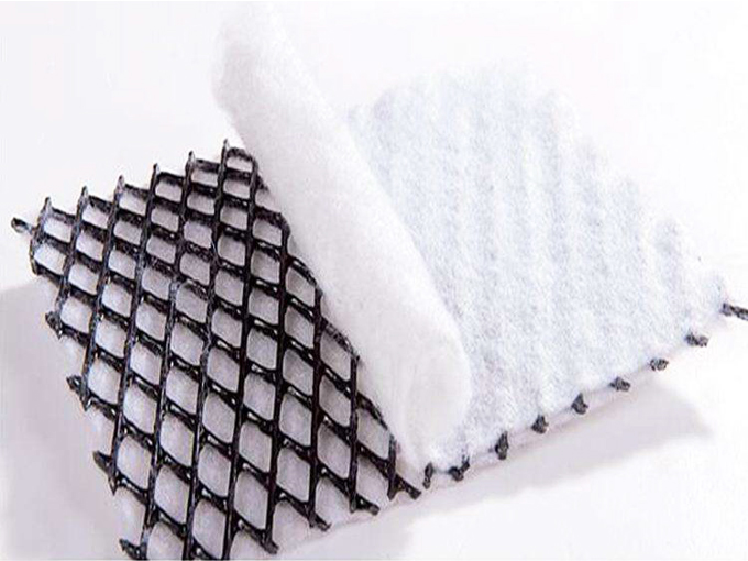 復(fù)合排水網(wǎng)是一種新型的排水土工材料。以高密度聚乙烯(HDPE)為原料,經(jīng)特殊的擠出成型工藝加工而成,具有三層特殊結(jié)構(gòu)。中間筋條剛性大,縱向排列,形成排水通道,上下交叉排列的筋條形成支撐防止土工布嵌入排水通道,即使在很高的荷載下也能保持很高的排水性能。雙面粘接滲水土工布復(fù)合使用,具有“反濾--排水--透氣--保護”綜合性能,是目前最理想的排水材料。